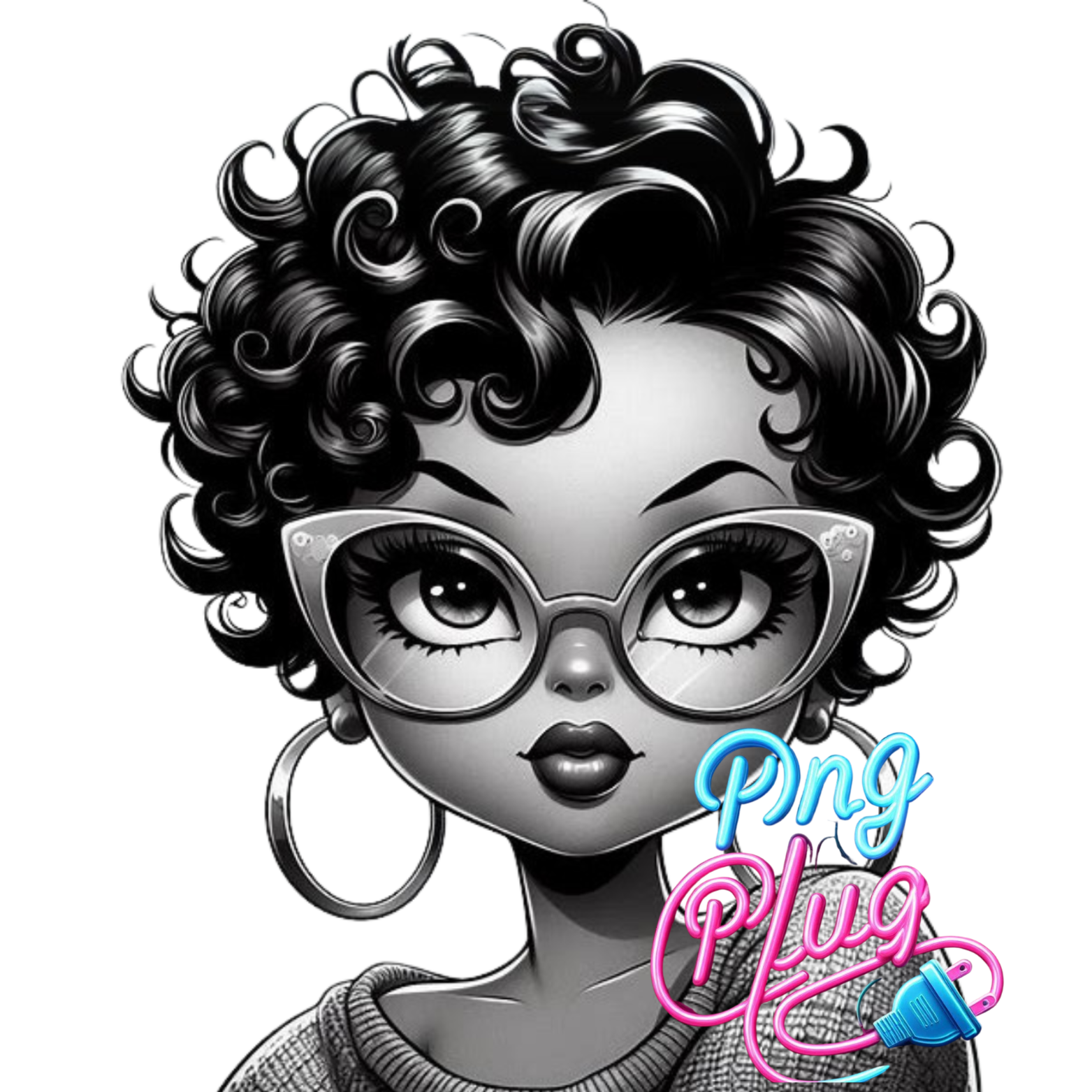 Curly Haired Girl with Glasses - Cute Afro Retro PNG Bundle Image – Instant Digital Download (Copy)
