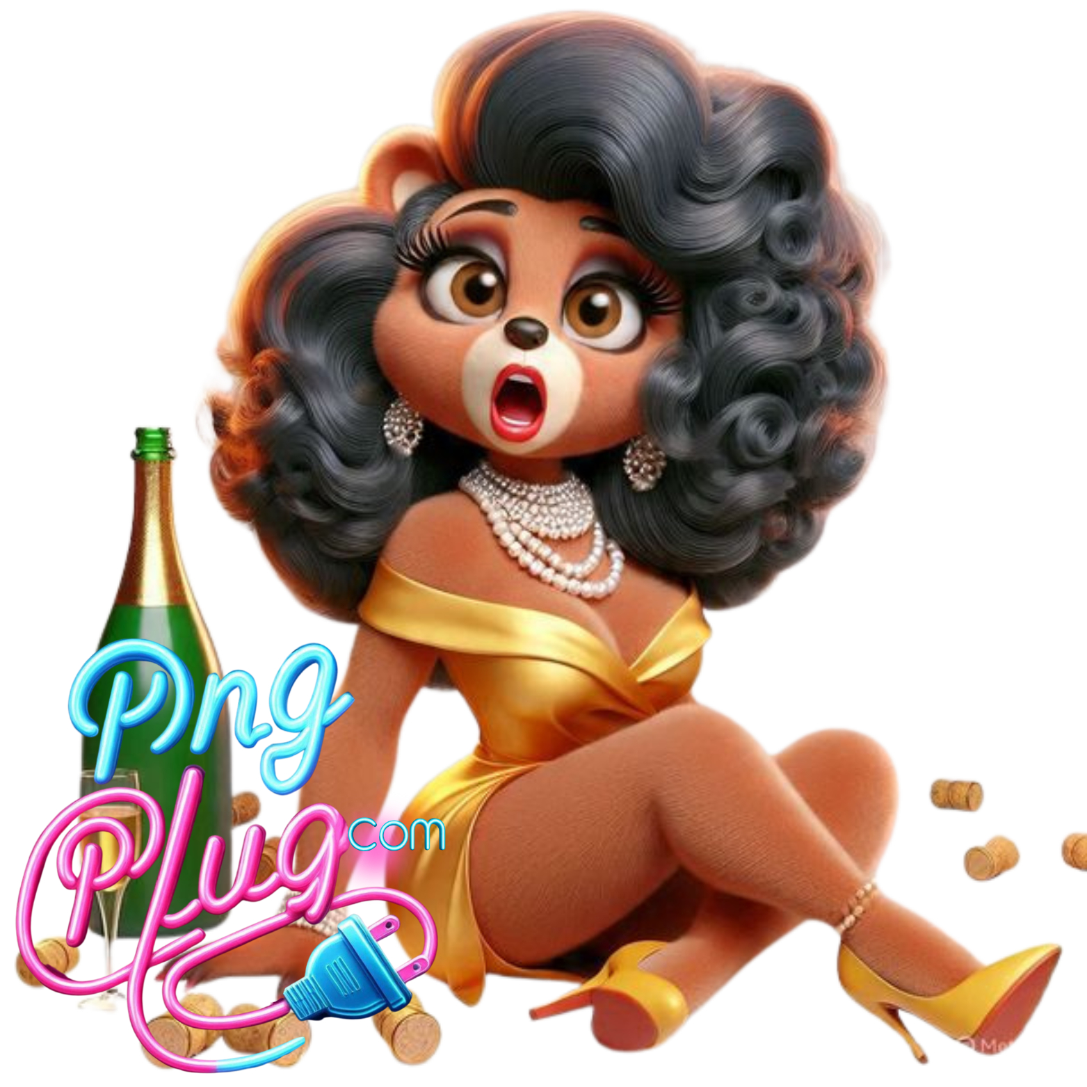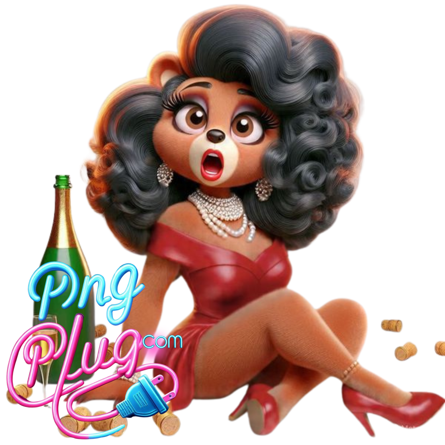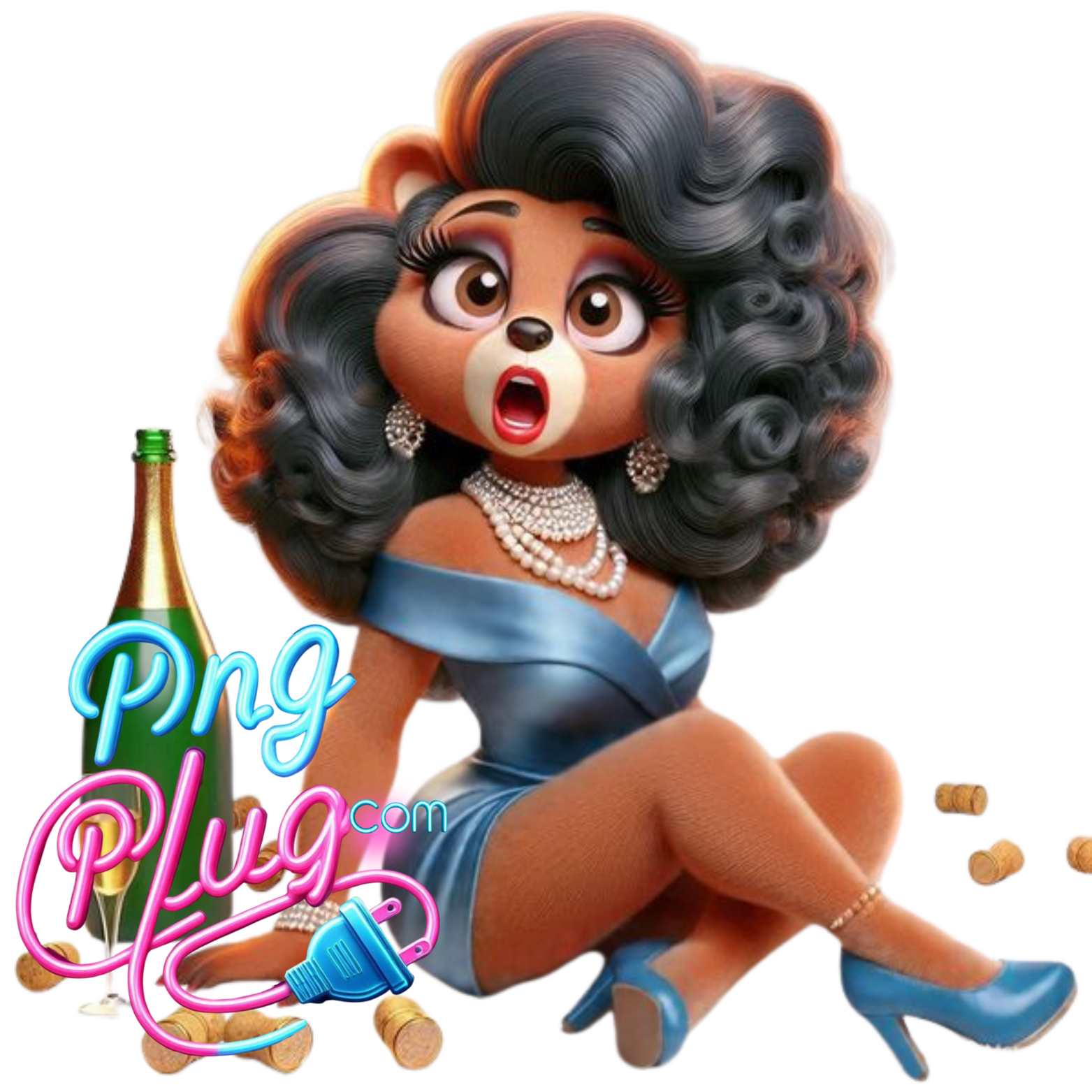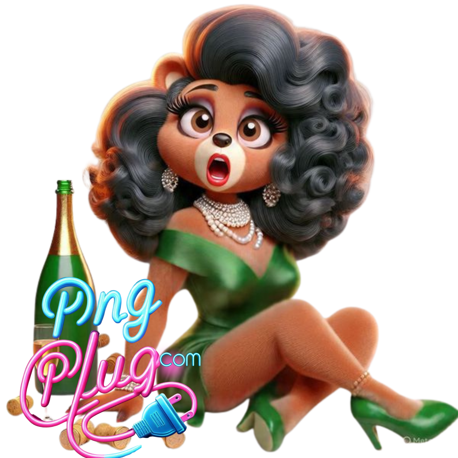 Glam Bear PNG Clipart Bundle – Champagne Celebration, Curly Hair, Pearl Jewelry - Instant Digital Download