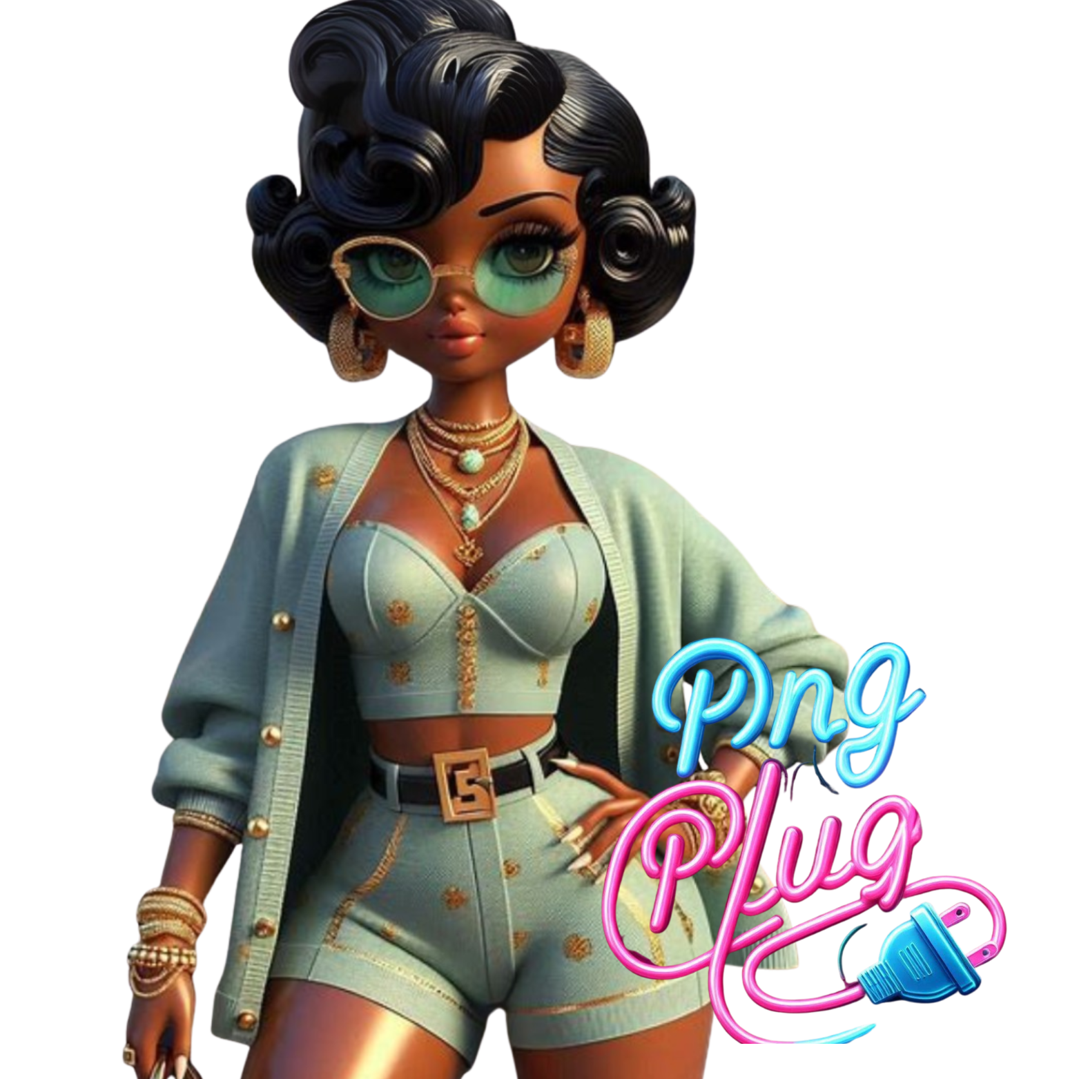 Glamorous Afrocentric Mint Betty Boop PNG -Bundle Instant Digital Download