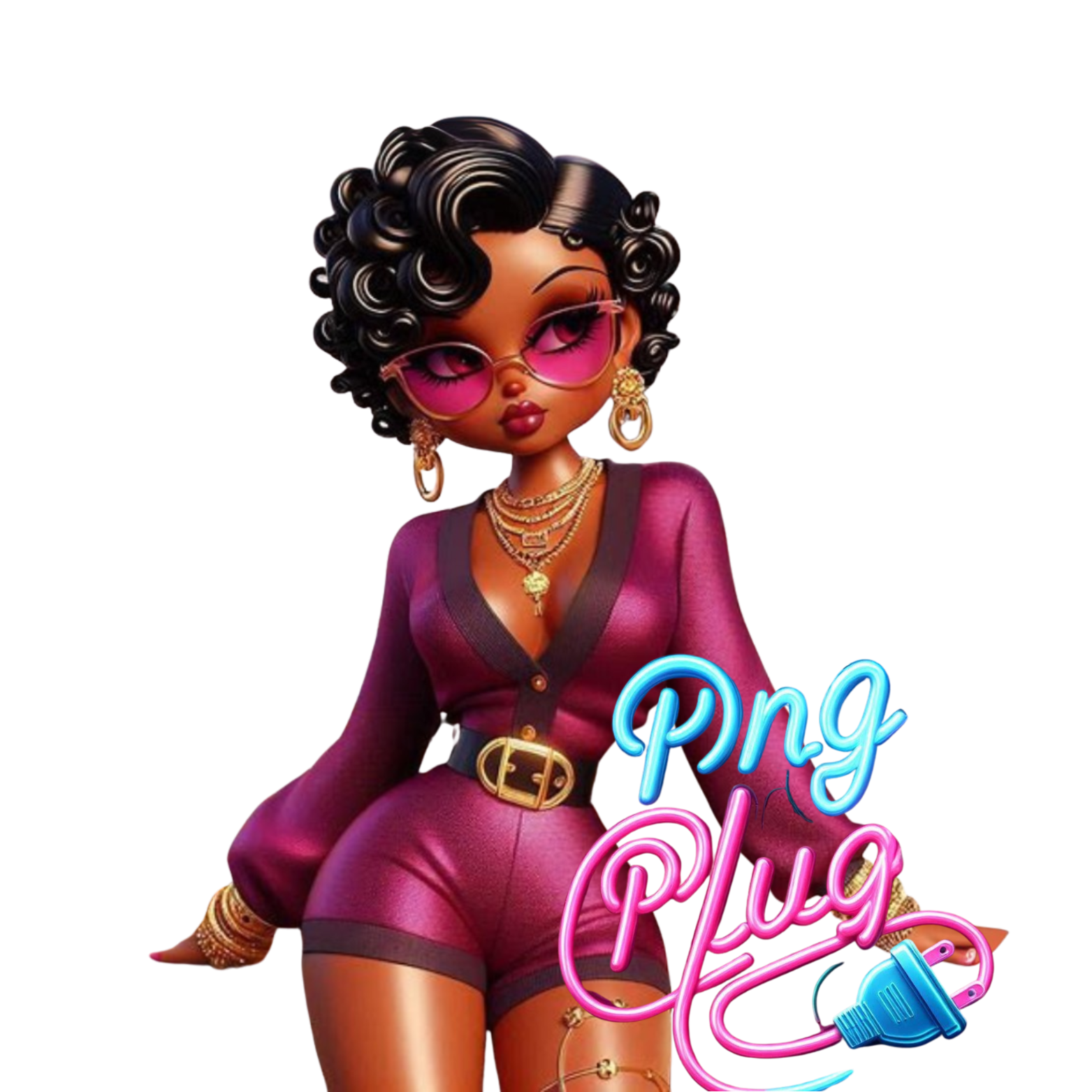 Glamorous Afrocentric Plum Betty Boop PNG Bundle - Instant Digital Download