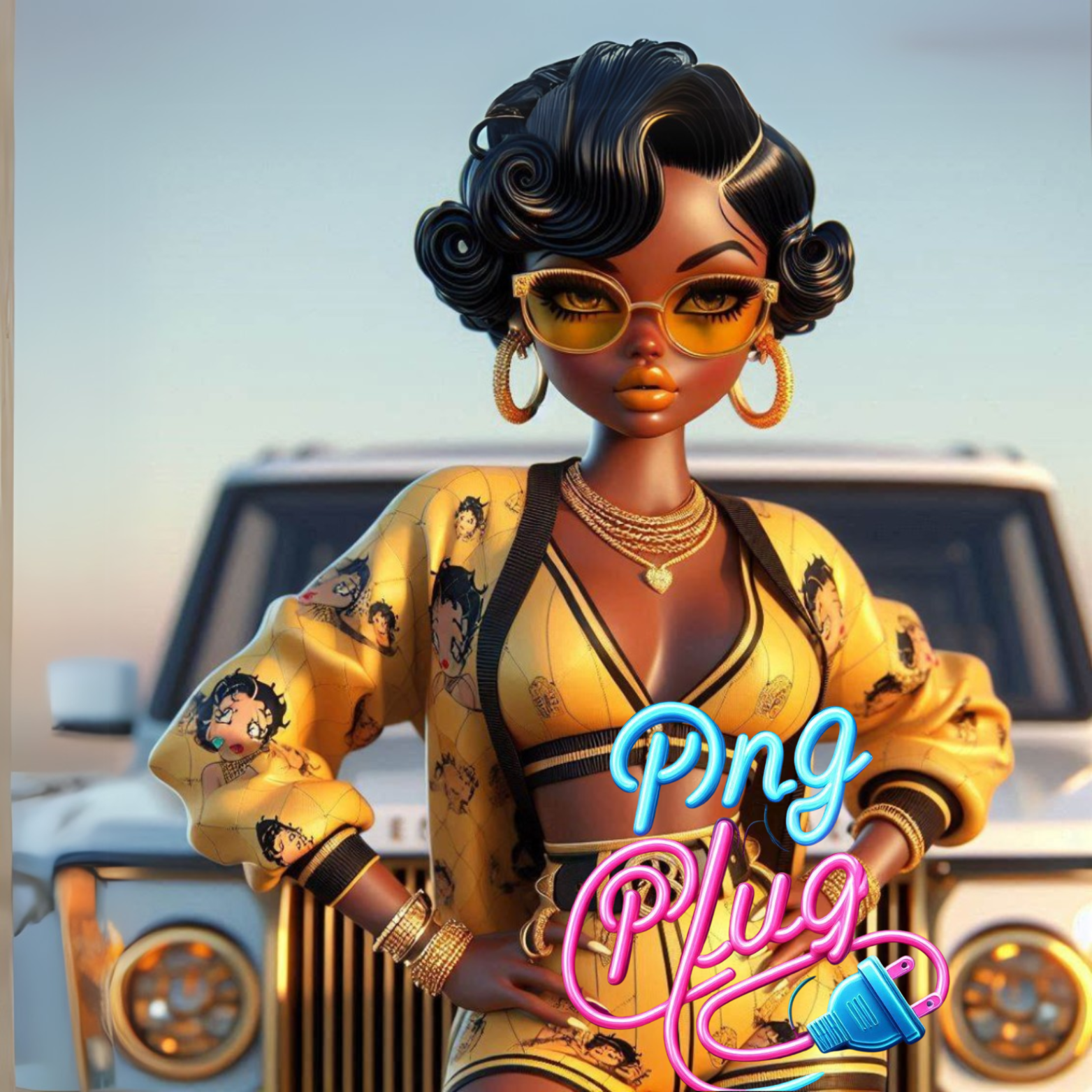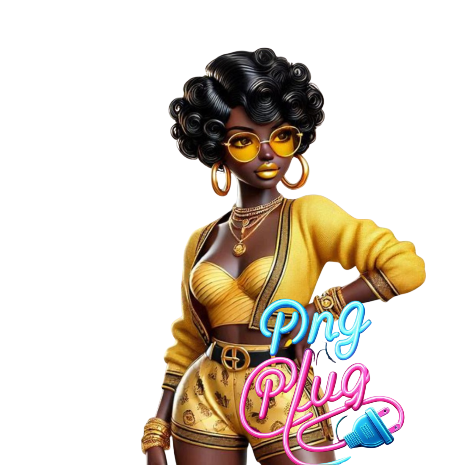 Glamorous Afrocentric Yellow-Gold Betty Boop PNG Bundle- Instant Digital Download