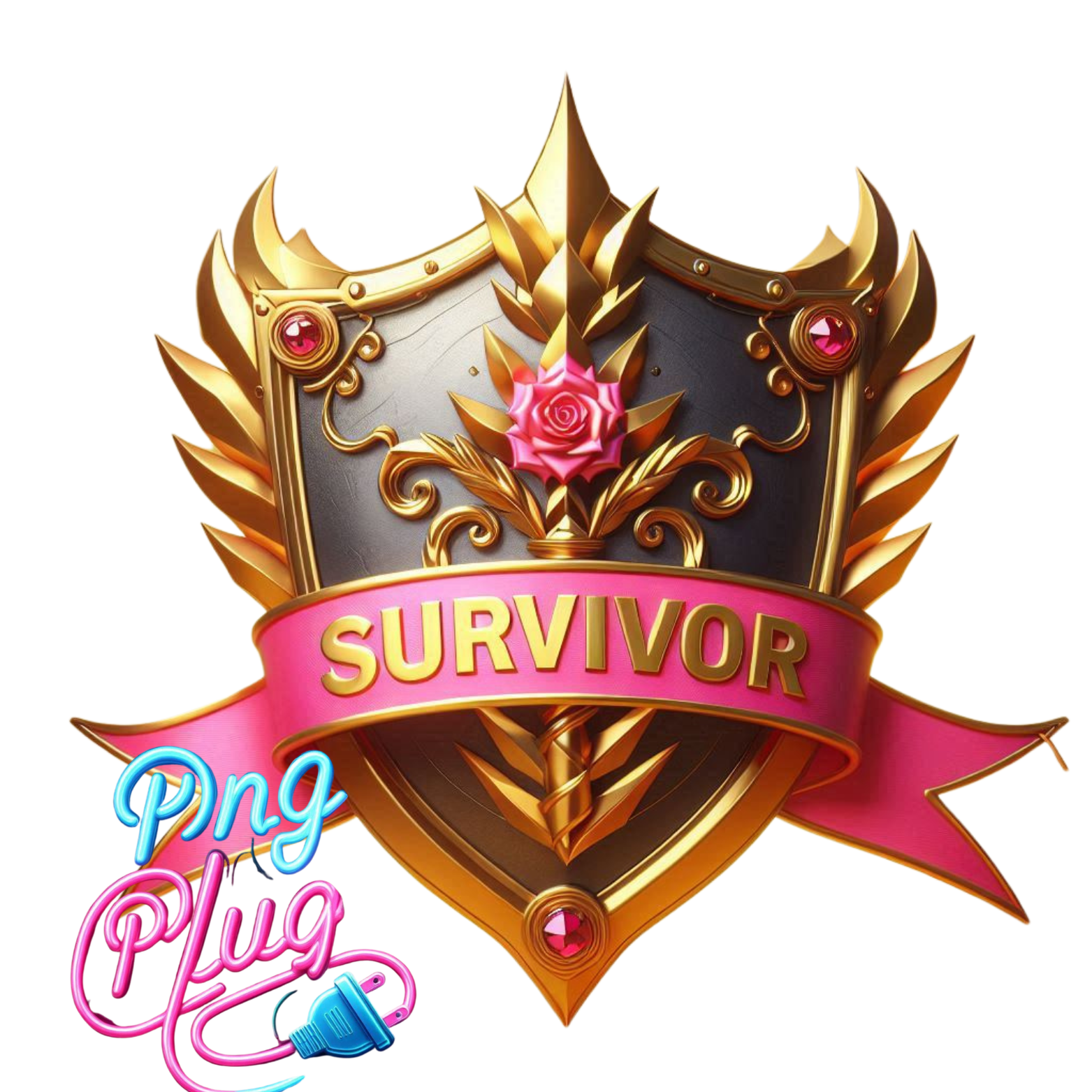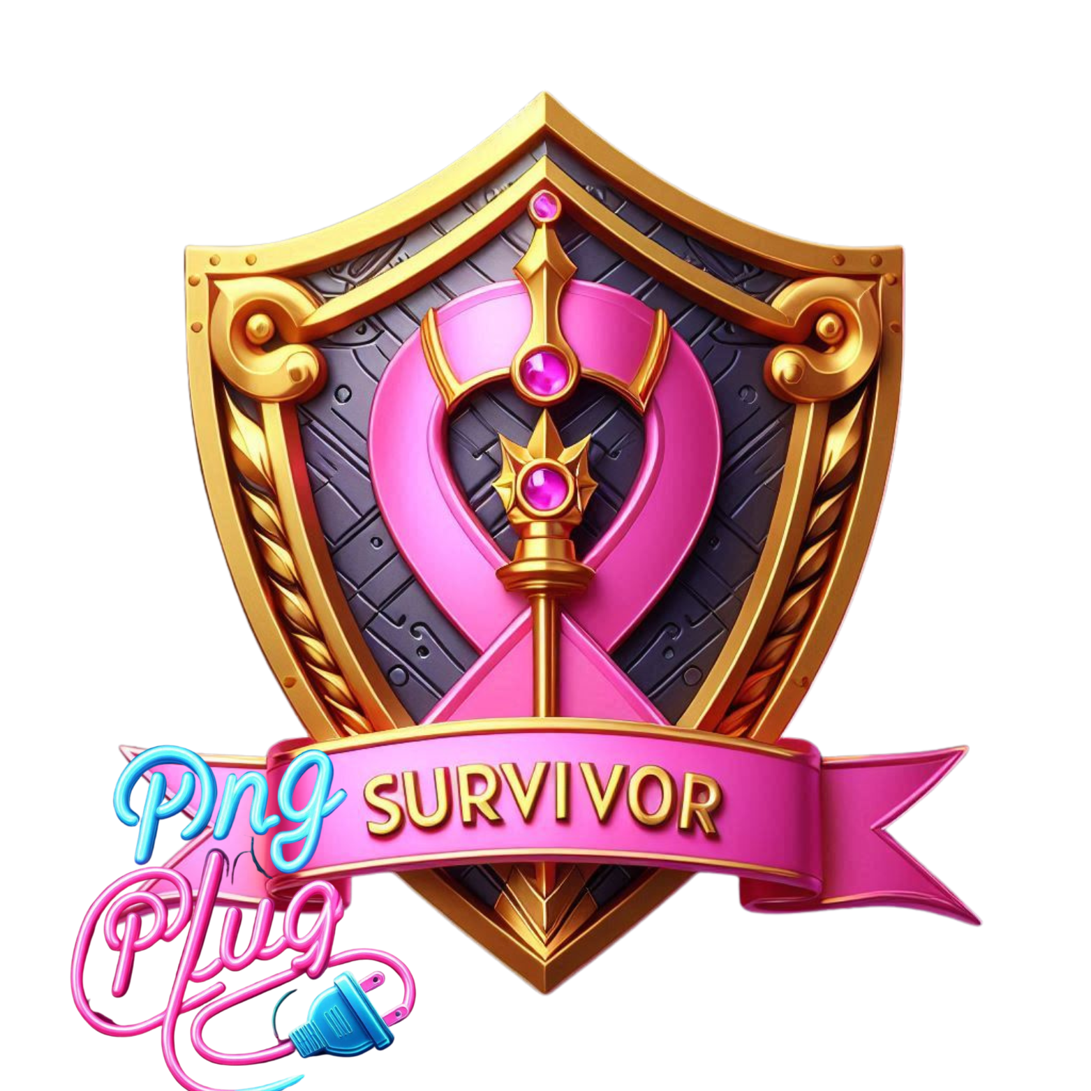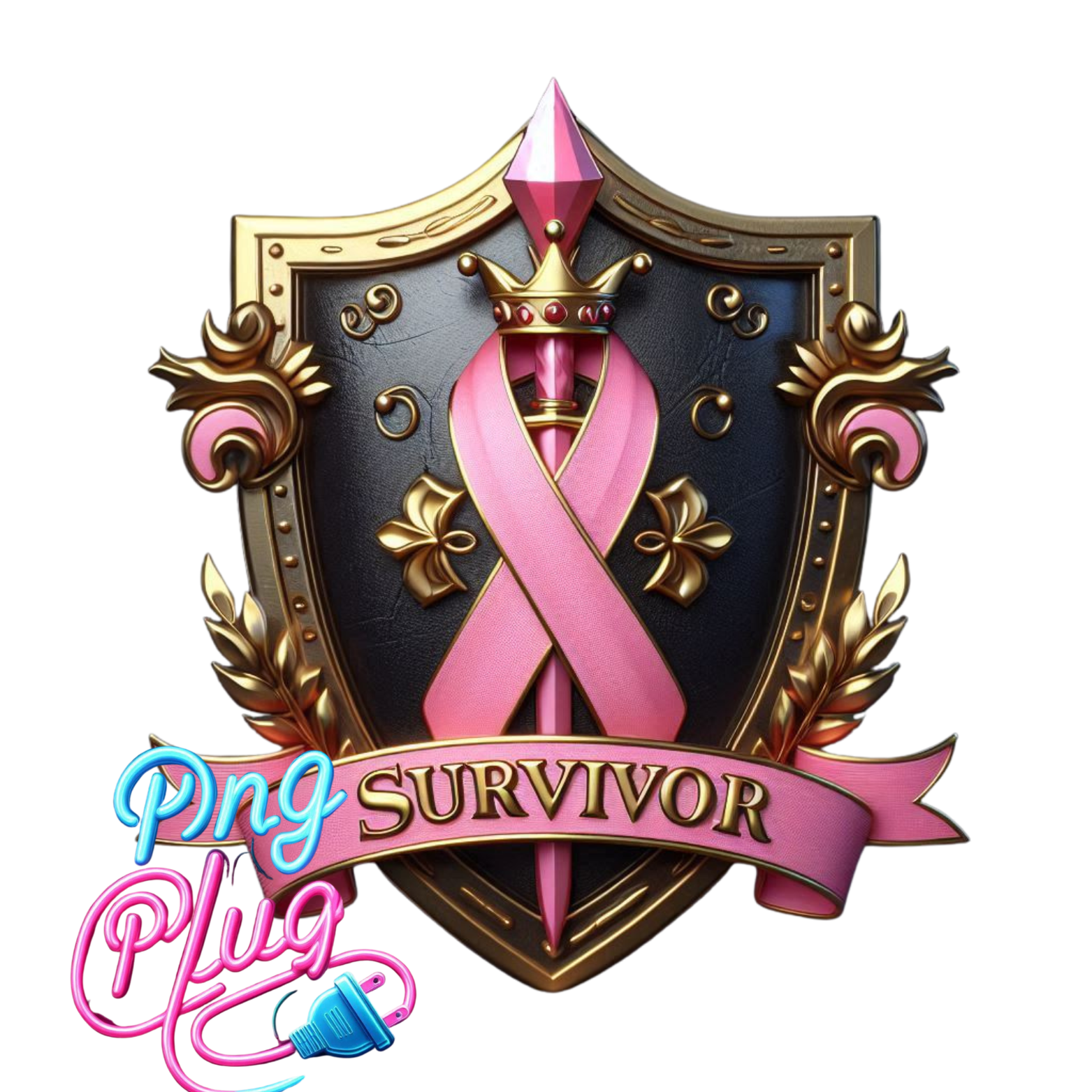 Gold & Pink Breast Cancer Survivor Shield PNG Bundle– Awareness Ribbon - Instant Digital Download
