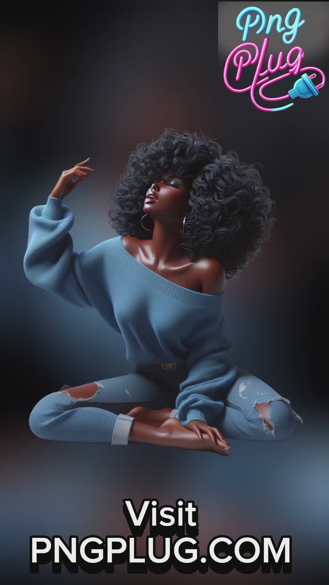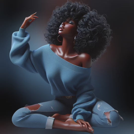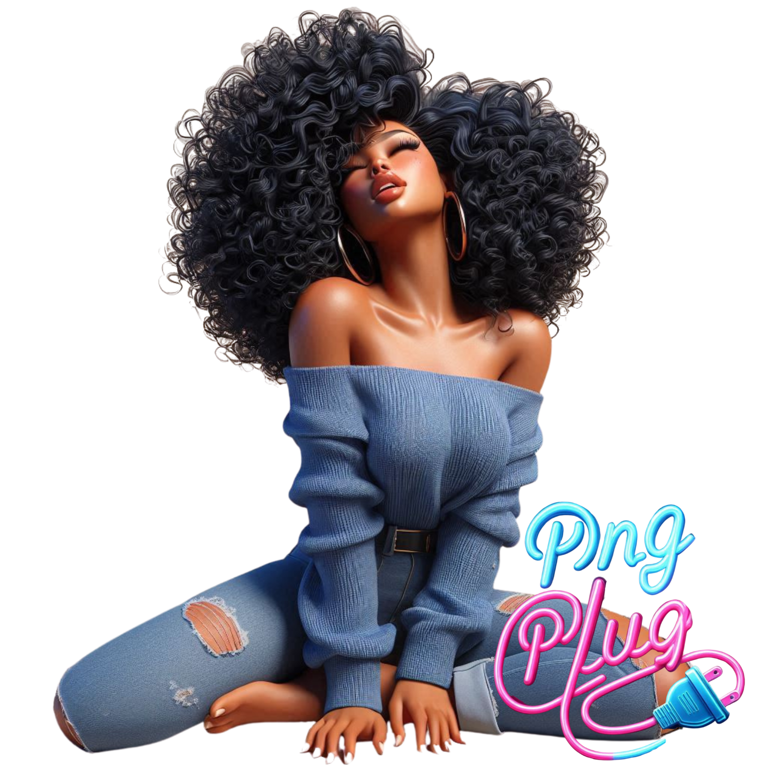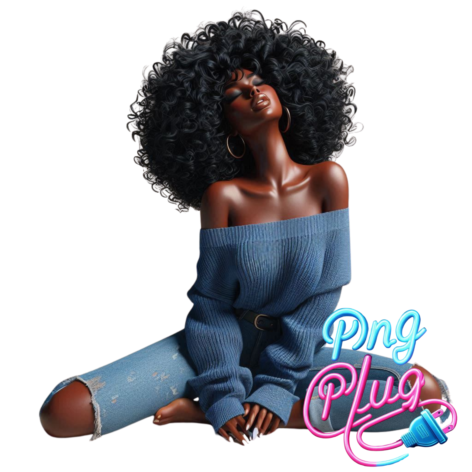 Serene Beauty African-American PNG | Relaxed Woman in Ripped Jeans & Blue Sweater | Digital Art for DIY Crafts - Instant Digital Download