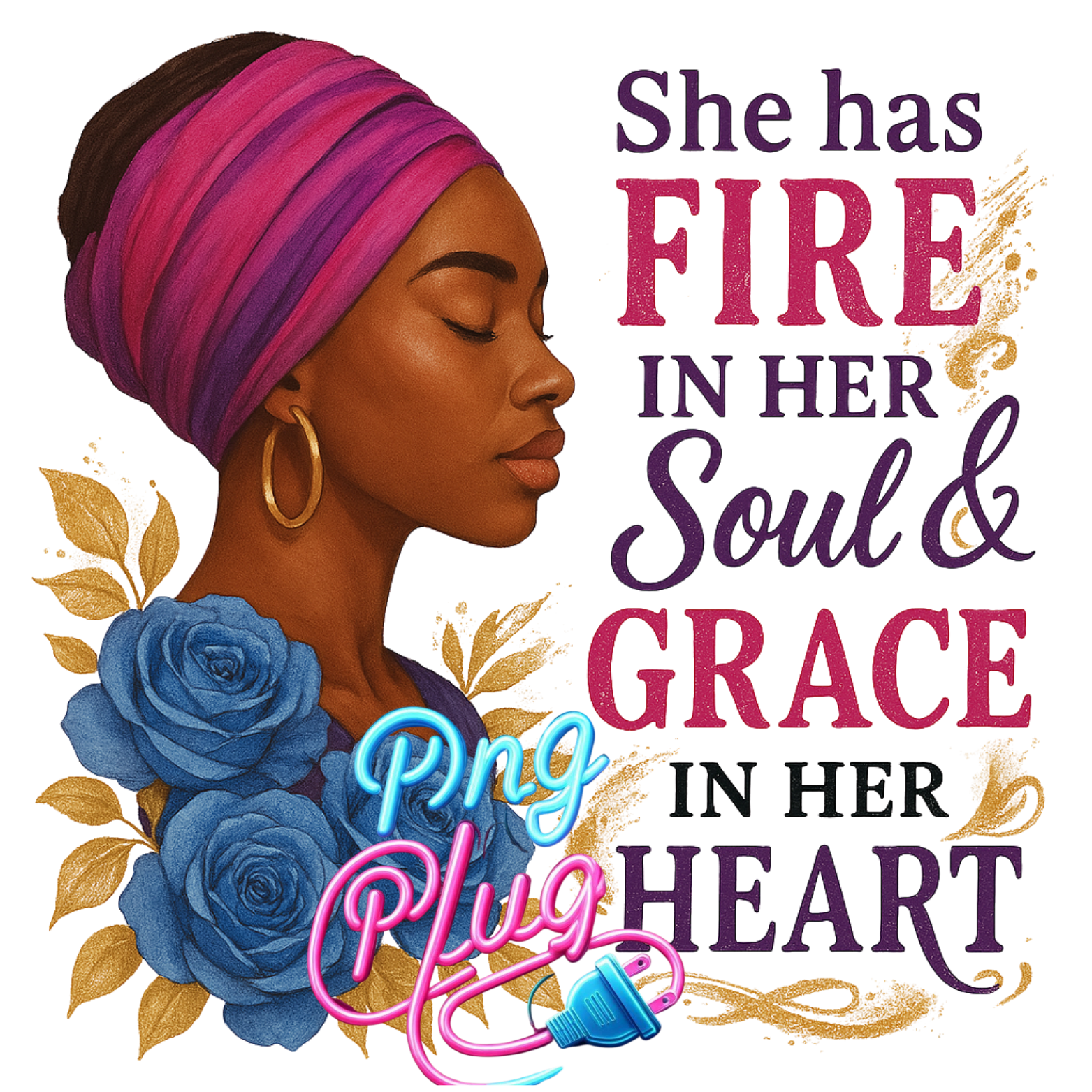 She Has Fire in Her Soul Grace in Her Heart PNG | Inspirational Afrocentric Woman Digital Download | Sublimation Design for Crafts - Instant Digital Download