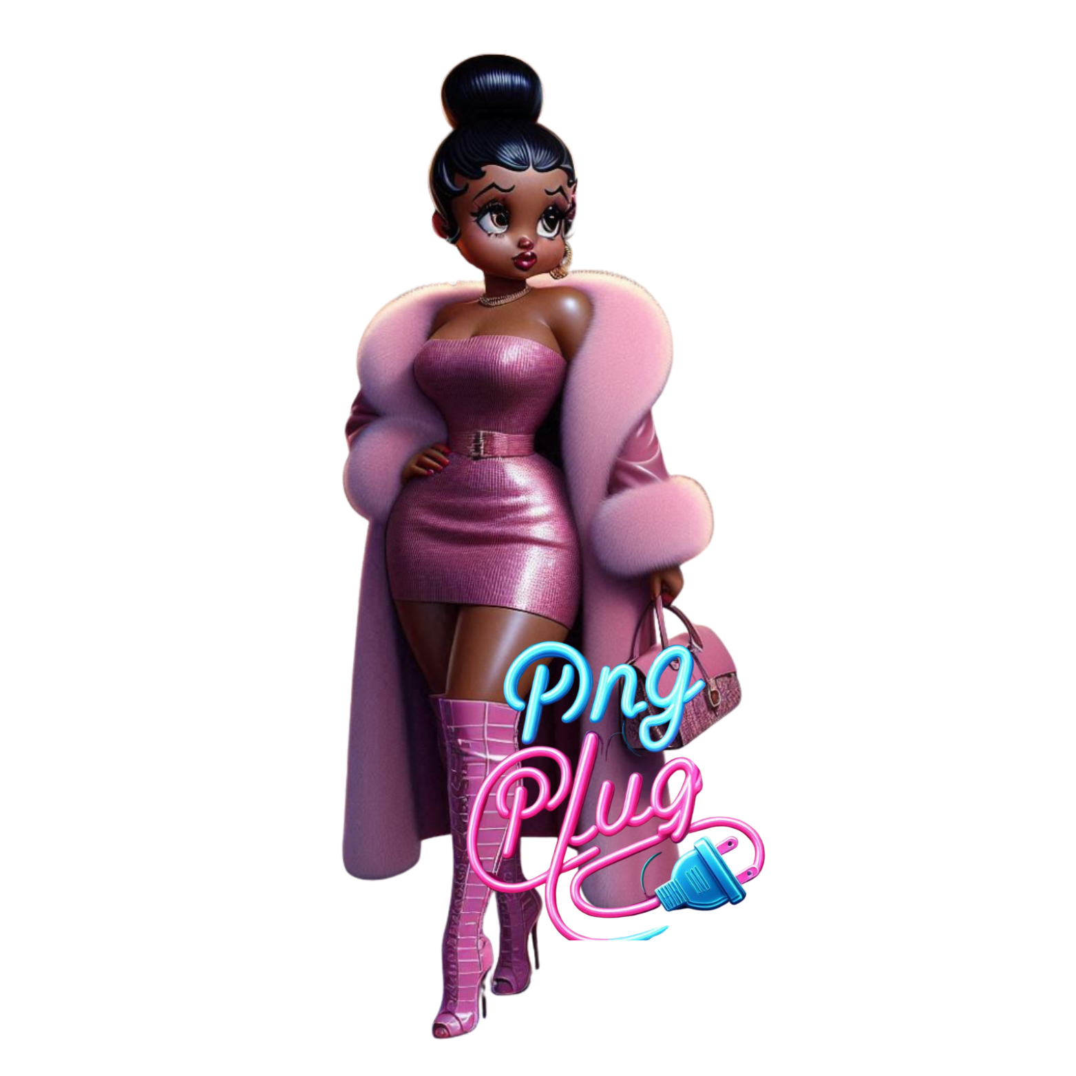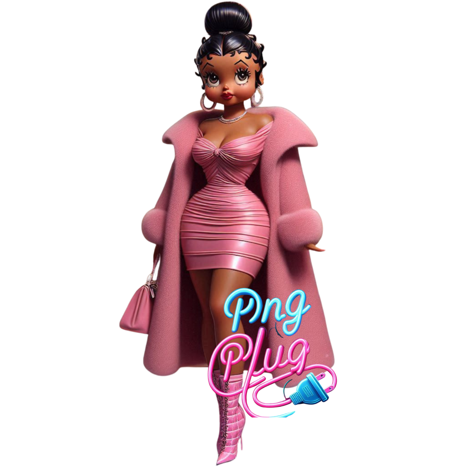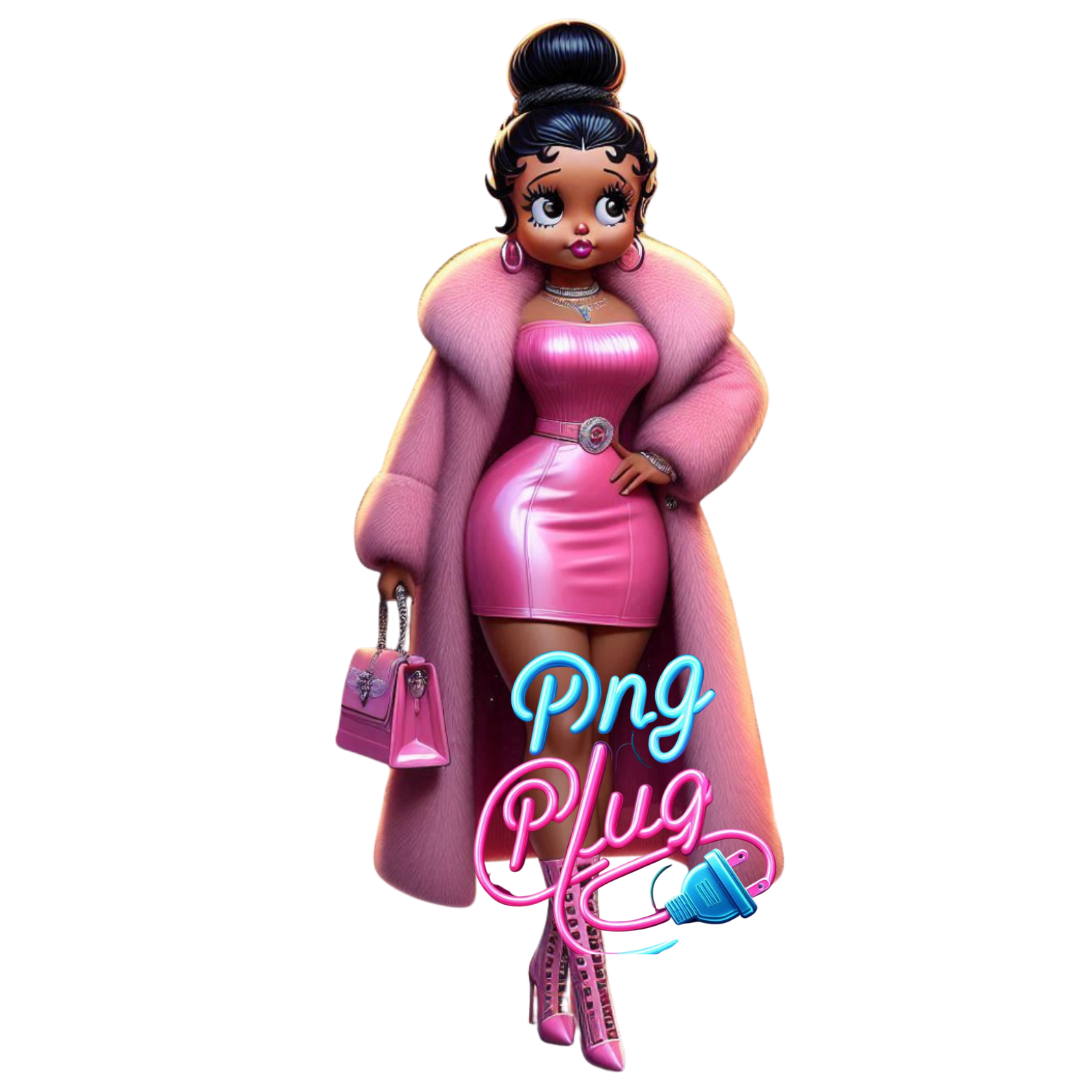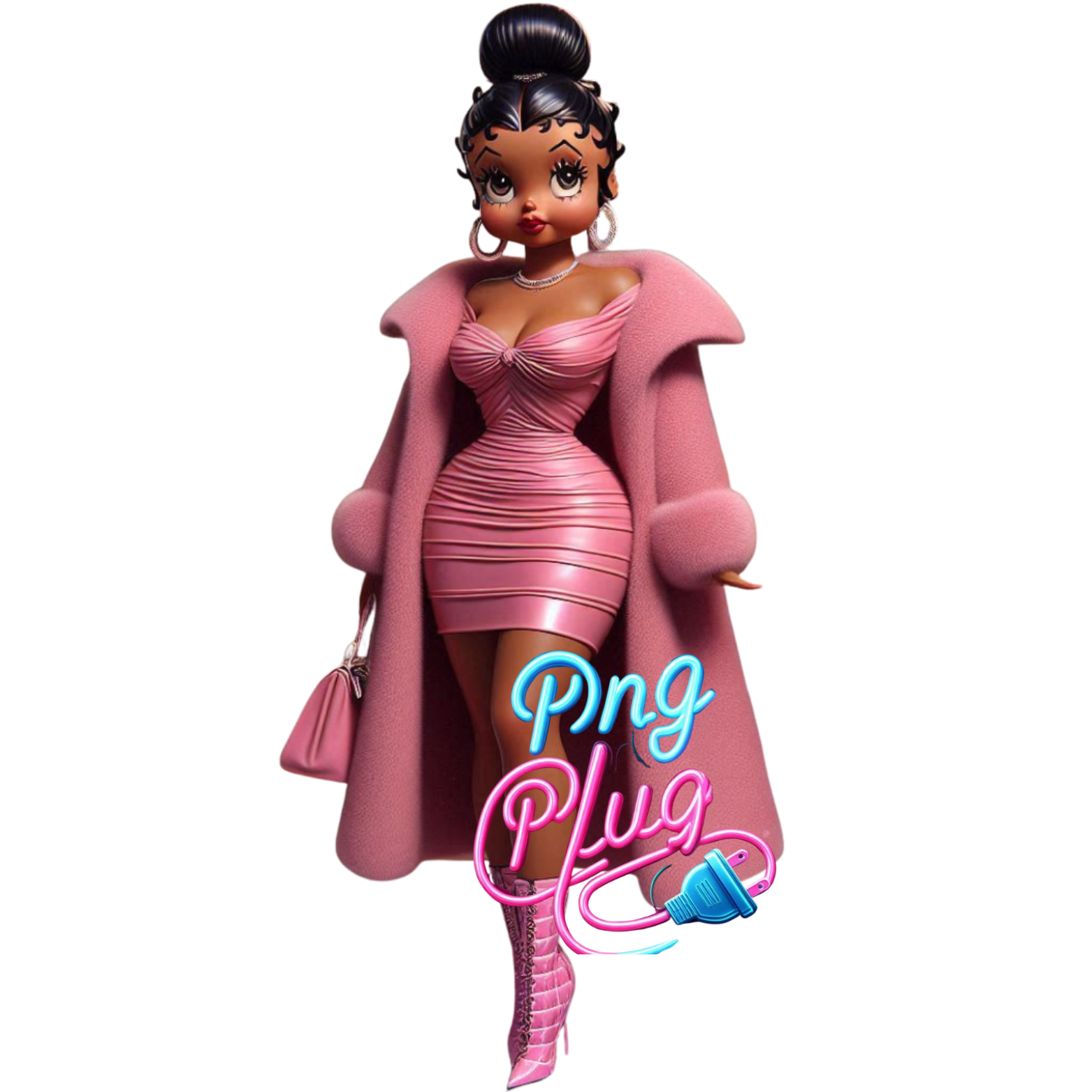 Stylish Pink Betty Boop Winter Fashion PNG Bundle - Instant Digital Download